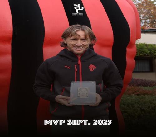 最终经过意大利球员协会的球员们评选,40岁的莫德里奇当选意甲9月最佳球员,并领取了奖杯。