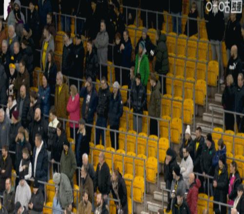镜头给到看台空位,部分狼队球迷比赛第15分钟才入场抗议复星国际