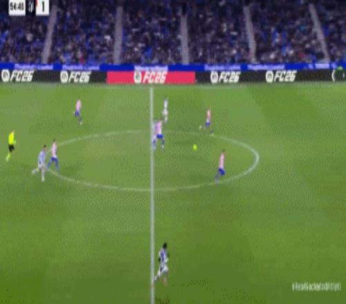第55分钟,久保建英右路传中,格德斯停球抽射破门,皇社1-1马竞