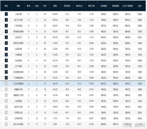 CBA积分榜:上海、广厦、广东同分占据前三,北京输球降到第五