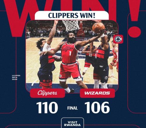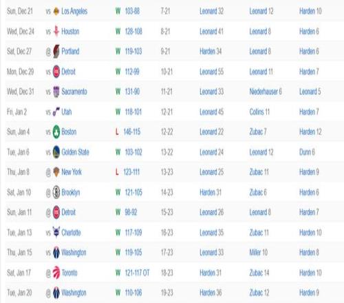 快船险胜奇才取6连胜哈登36+7+9祖巴茨14+12萨尔28+6